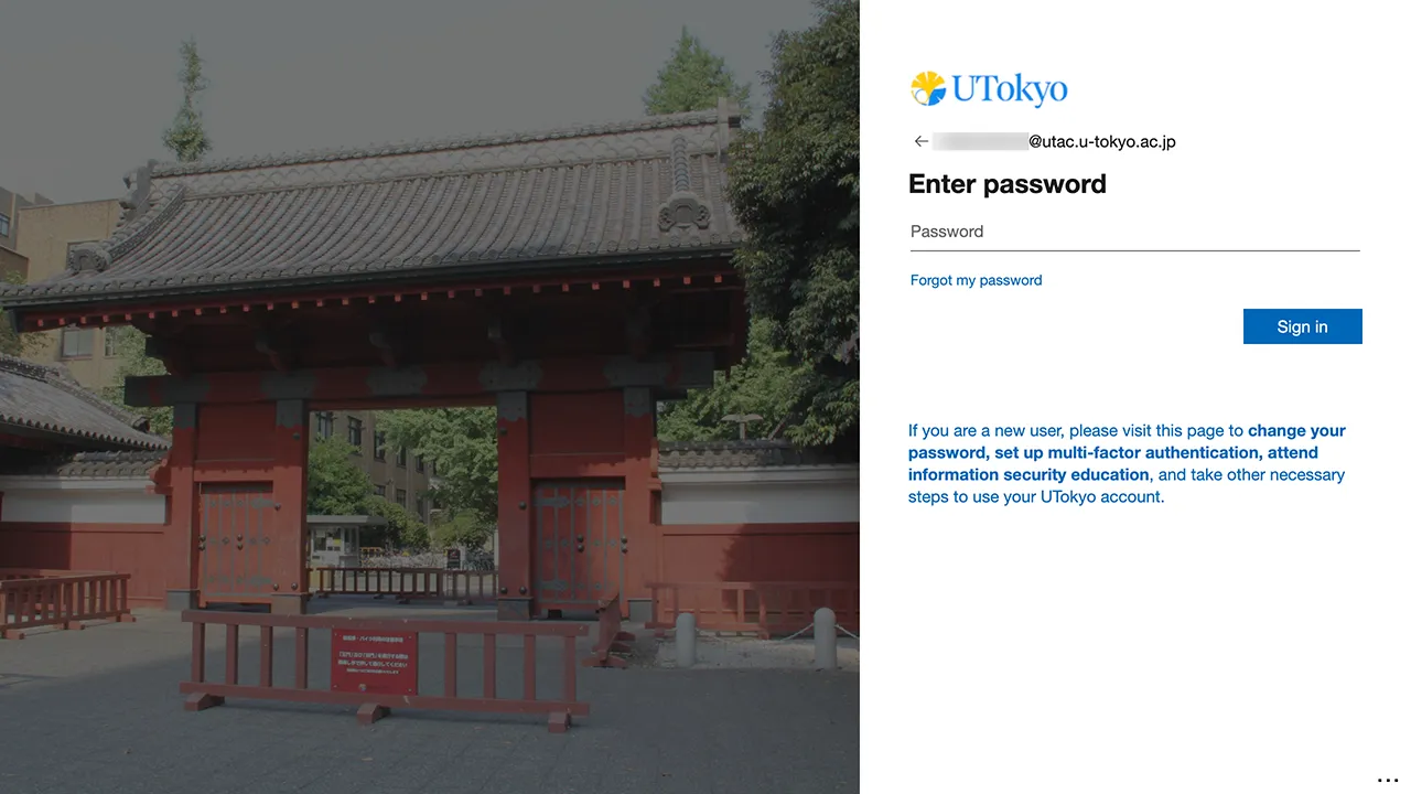 @utac.u-tokyo.ac.jp) and the temporary password.If the sign-in screen does not appear