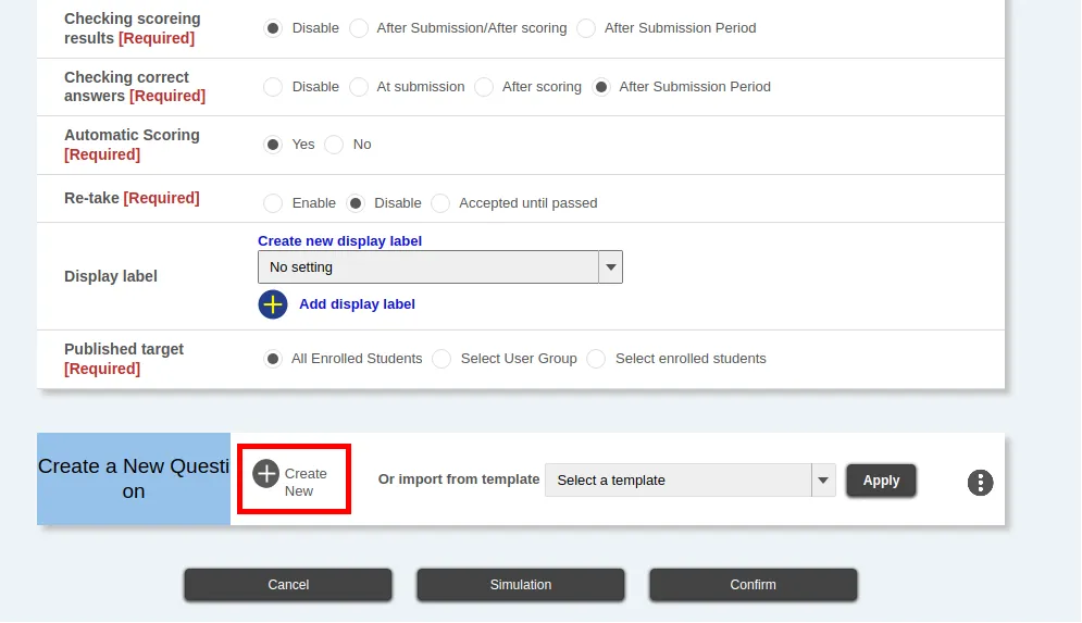 - Automatic Scoring*: Set whether or not to score questions automatically.