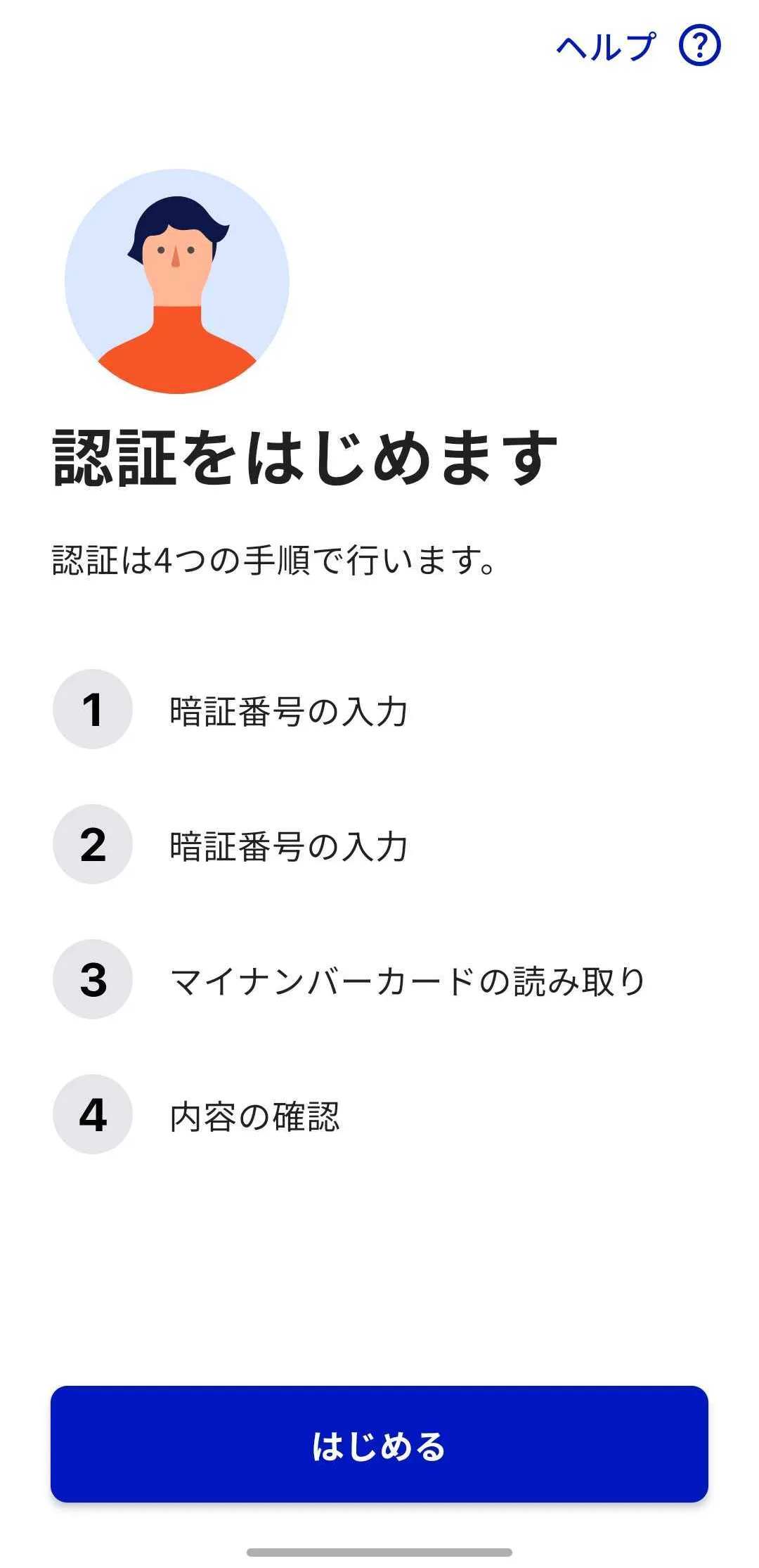 「はじめる」ボタンを押して認証手順をすすめてください.