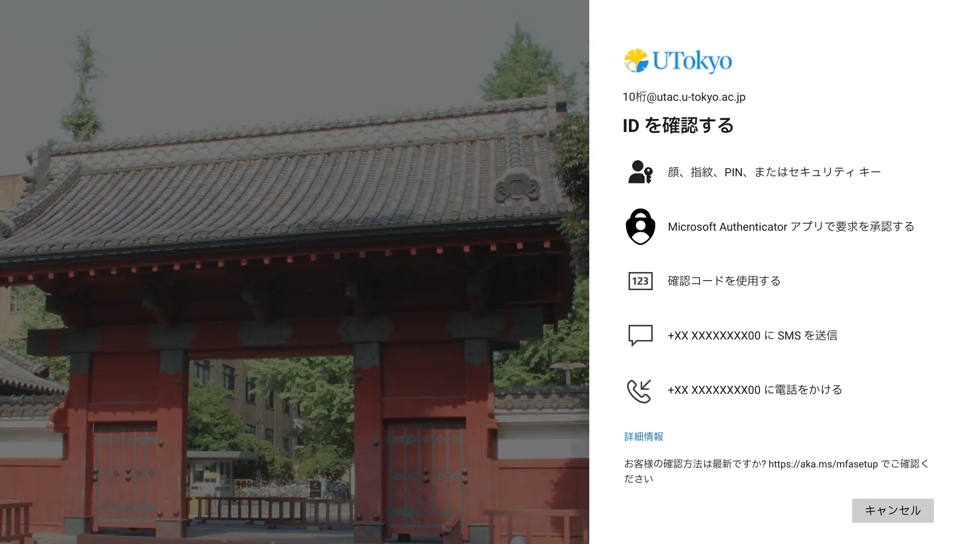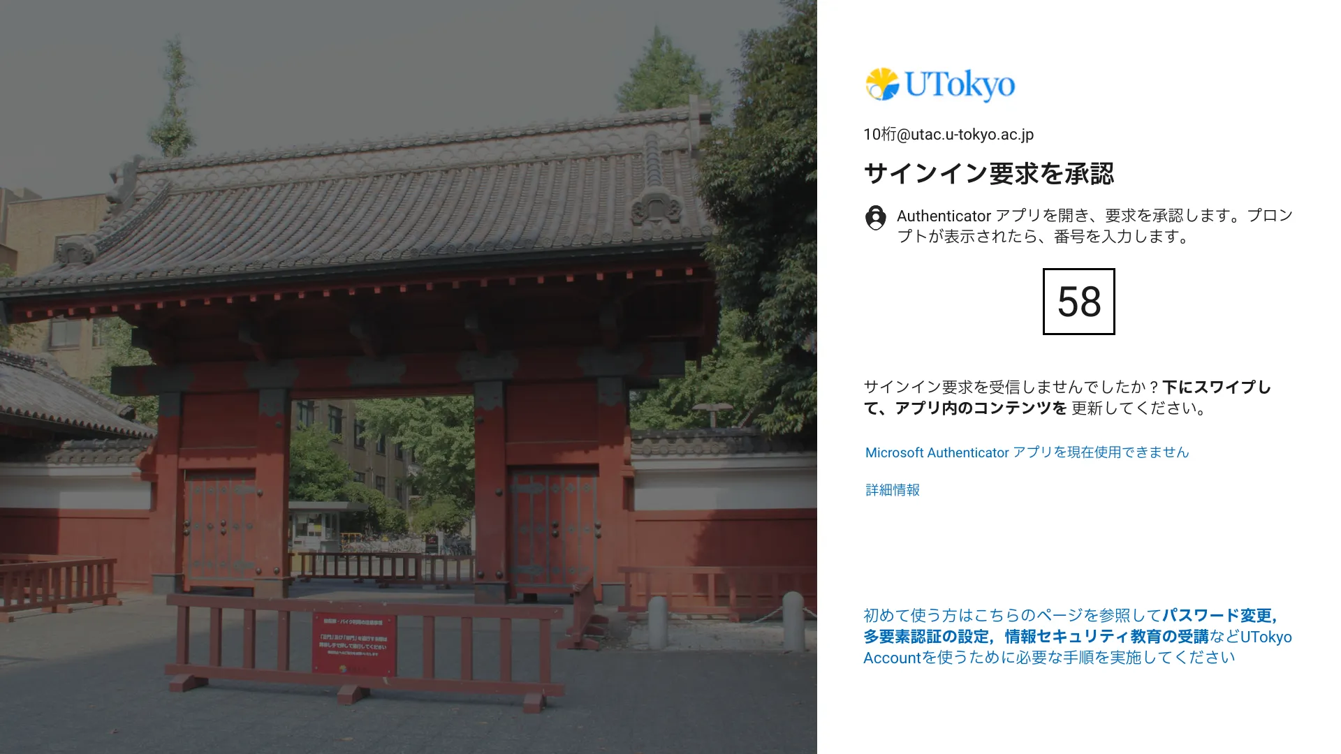 登録した本人確認方法を使ってUTokyo Accountにサインインできるようになります.