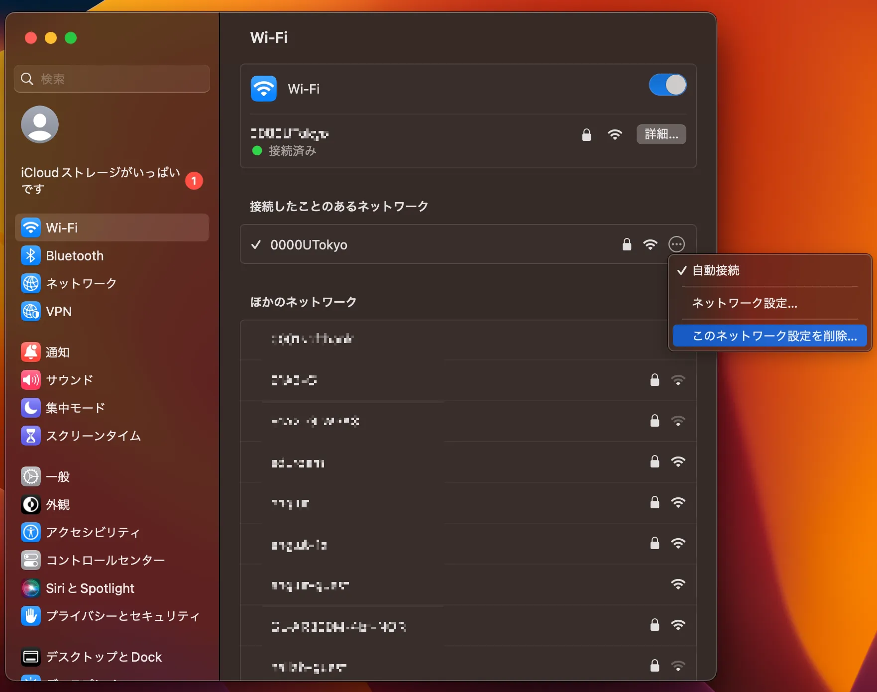 手順3:既存のWi-Fiの設定情報を削除する