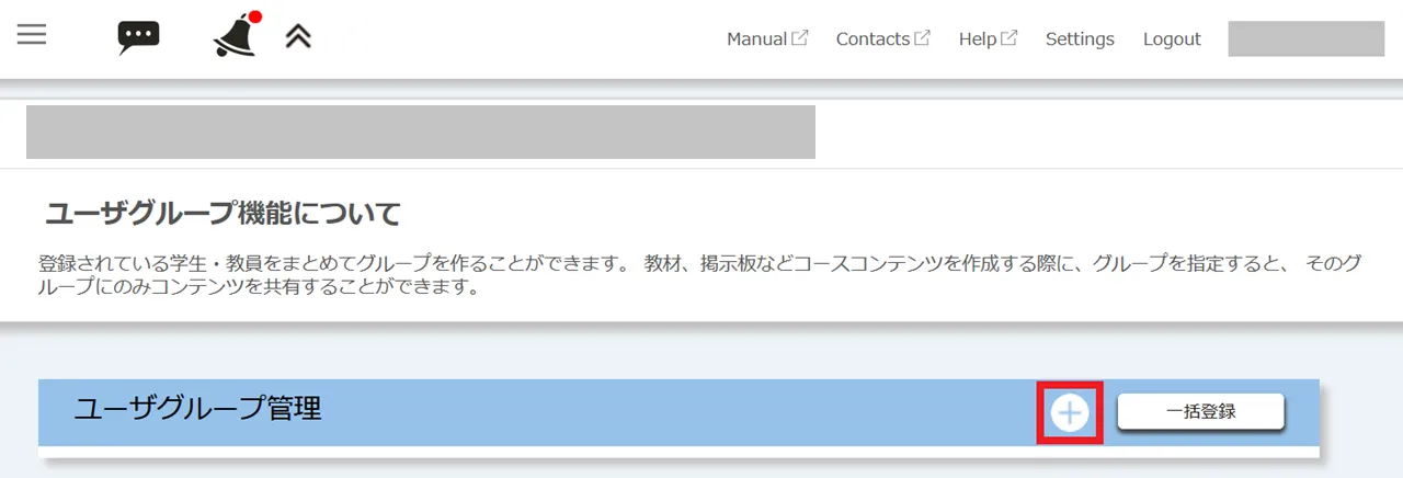 3. 「ユーザグループ管理」の右側にある「+」を押してください.