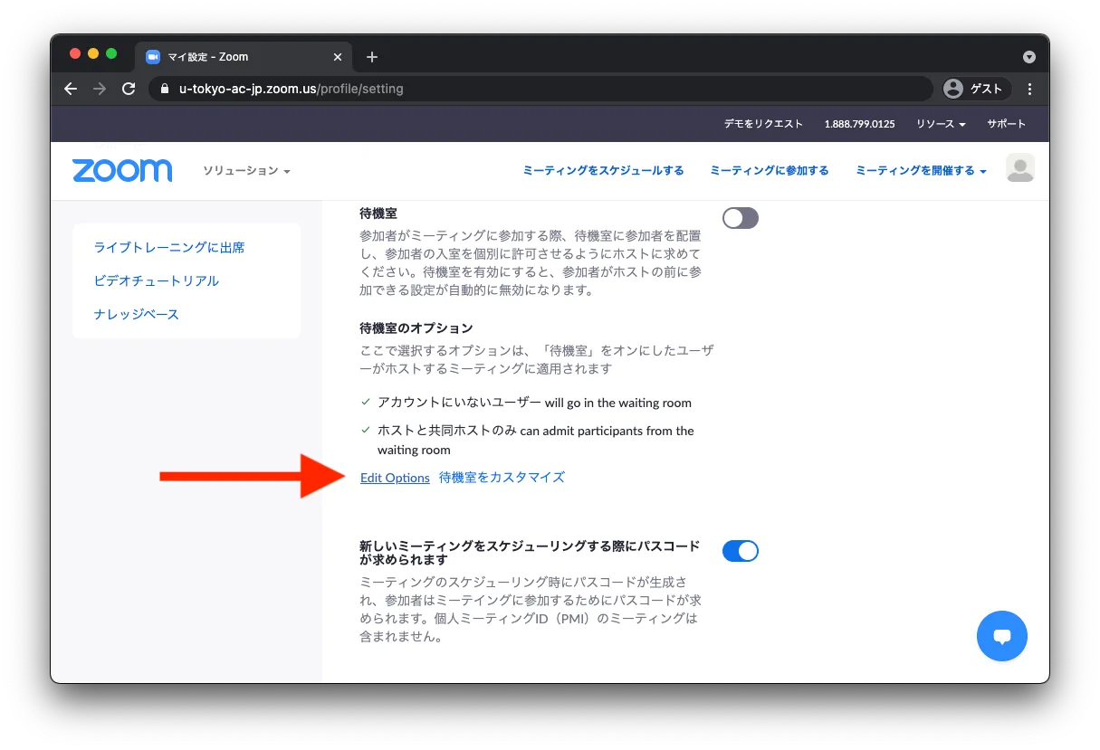2. 「待機室オプション」の「edit options」を選択します.